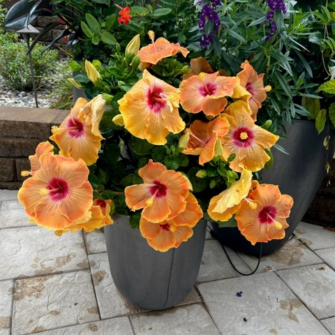 Hollywood Gold Digger Tropical Hibiscus, in bloom