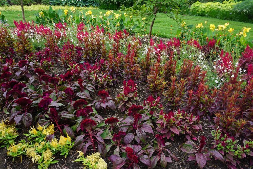 Sparkle White Gaura, Dragon's Breath Celosia, QIS Orange Globe Amaranth, Dracula Celosia