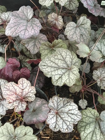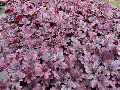 A few favorites include ‘Caramel’ (light green to - you guessed it - caramel foliage), ‘Dolce Cherry Truffles’ (cherry red to deep red ruffled foliage), ‘Lime Marmalade’ (yellow-green ruffled foliage), ‘Frosted Violet’ (prominent veins, violet purple foliage with a silver overcast), ‘Green Spice’ (purple veins, bright green foliage with a silver overcast), ‘Obsidian’ (very dark purple foliage), and ‘Palace Purple’ (dark green to purple to burgundy foliage). Heuchera makes a stunning mass planting or you can mix-and-match to achieve bright splashes of contrast throughout the garden.