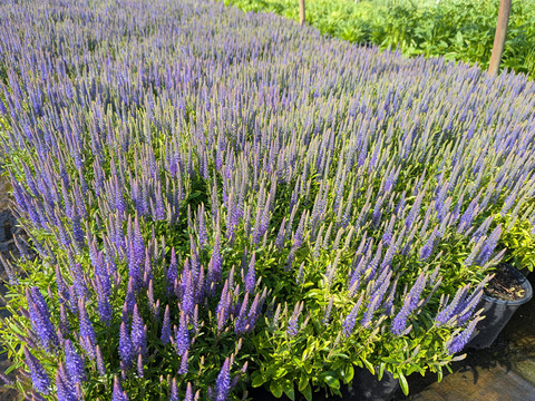 Spring annuals and tender perennials are typically grown in Greenhouses so they can be ready and luxurious exactly when customers want them. Some perennials are also “forced” into early bloom in greenhouses. In May, there can be a very big difference between field-grown and greenhouse-grown plants of the same type. The latter typically look good right away (so they’re a great choice where that’s important), but we typically pay a premium for it.