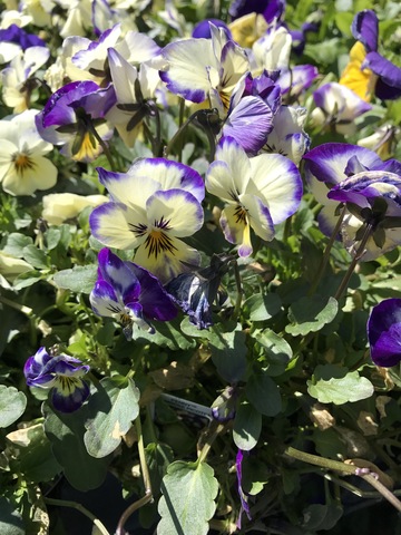 Pansies can be “pure” (one color) or “blotched” (two colors, usually with the darker in the center) and come in white, yellow, orange, red, blue and purple.
