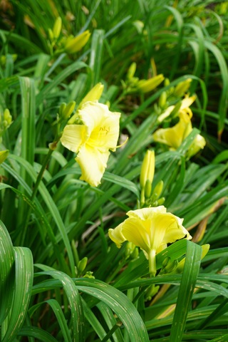 Hemerocallis’ leaves are long, slender spears that form a mounded shape, from which tall thin stalks sprout and flower. These stalks can be cut to below the foliage after they are done blooming, but this isn’t necessary to promote flowers. Daylilies grow quickly and need to be divided every few years to stay healthy.