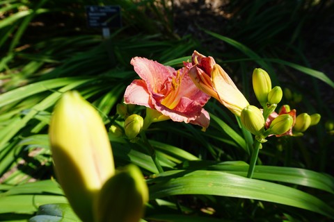 Hemerocallis’ leaves are long, slender spears that form a mounded shape, from which tall thin stalks sprout and flower. These stalks can be cut to below the foliage after they are done blooming, but this isn’t necessary to promote flowers. Daylilies grow quickly and need to be divided every few years to stay healthy.