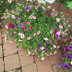 Supertunia Mini Vista Pink Star Petunia, Snowstorm Pink Bacopa, Superbena Sparkling Rose Verbena