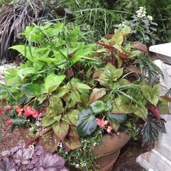 Surefire White Whopper Begonia, ColorBlaze Strawberry Drop Coleus, Totally Tempted Watermelon Wine Cuphea, Diamond Snow Spurge