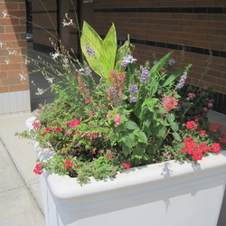 Surefire Rose Begonia, 'Unplugged' Red Mealycup Sage, Unplugged White Mealycup Sage, Stardiva White Fan Flower